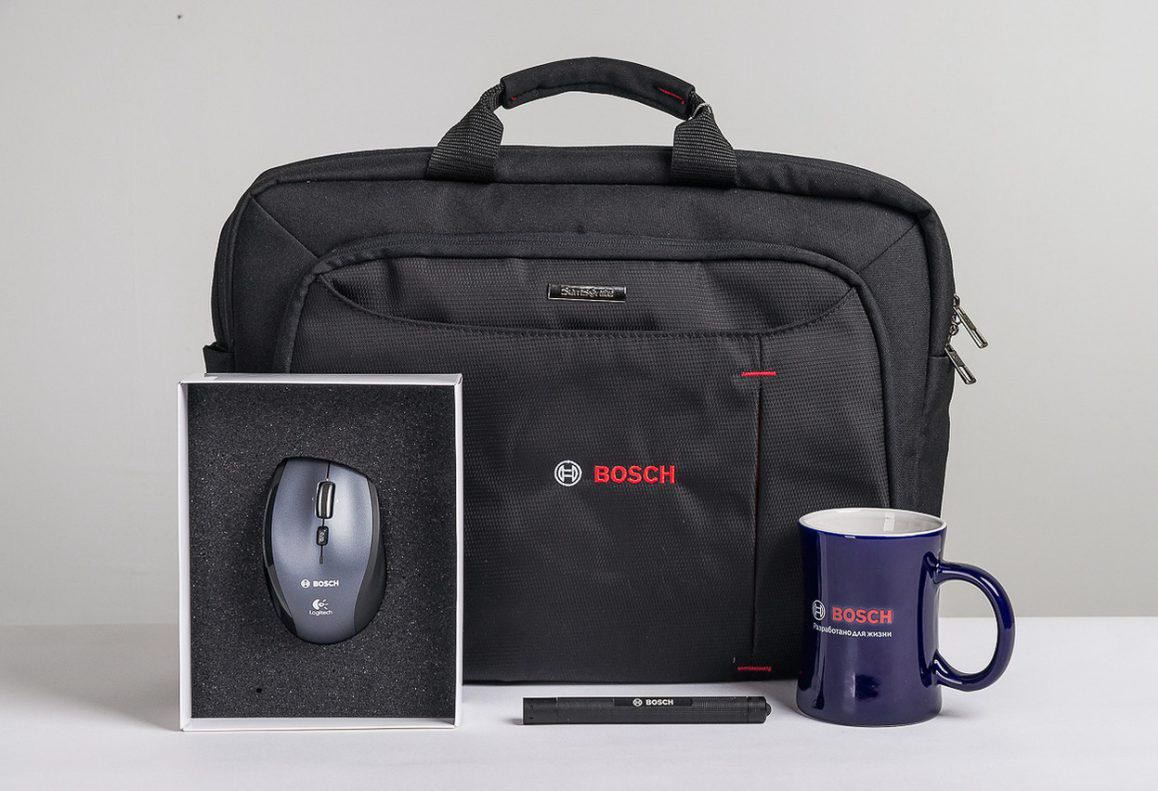 Простой пример — брендированные футболки с логотипом, термокружки, ручки, чехлы, наклейки, худи, носки, ежедневники и т.д.