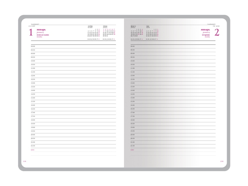 Недатированный. Дает полную свободу. Пользователь сам проставляет даты, может пропускать дни. Идеален для творческих задач, ведения заметок. Огромный плюс: такой подарок актуален в любое время года.