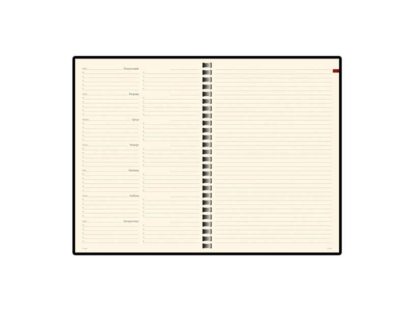А4 (210х297 мм). Настольный вариант для тех, кто любит масштабное планирование. Отличный выбор для руководителей, архитекторов, проектных менеджеров. В таком ежедневнике удобно чертить схемы, графики и расписывать задачи на весь день.