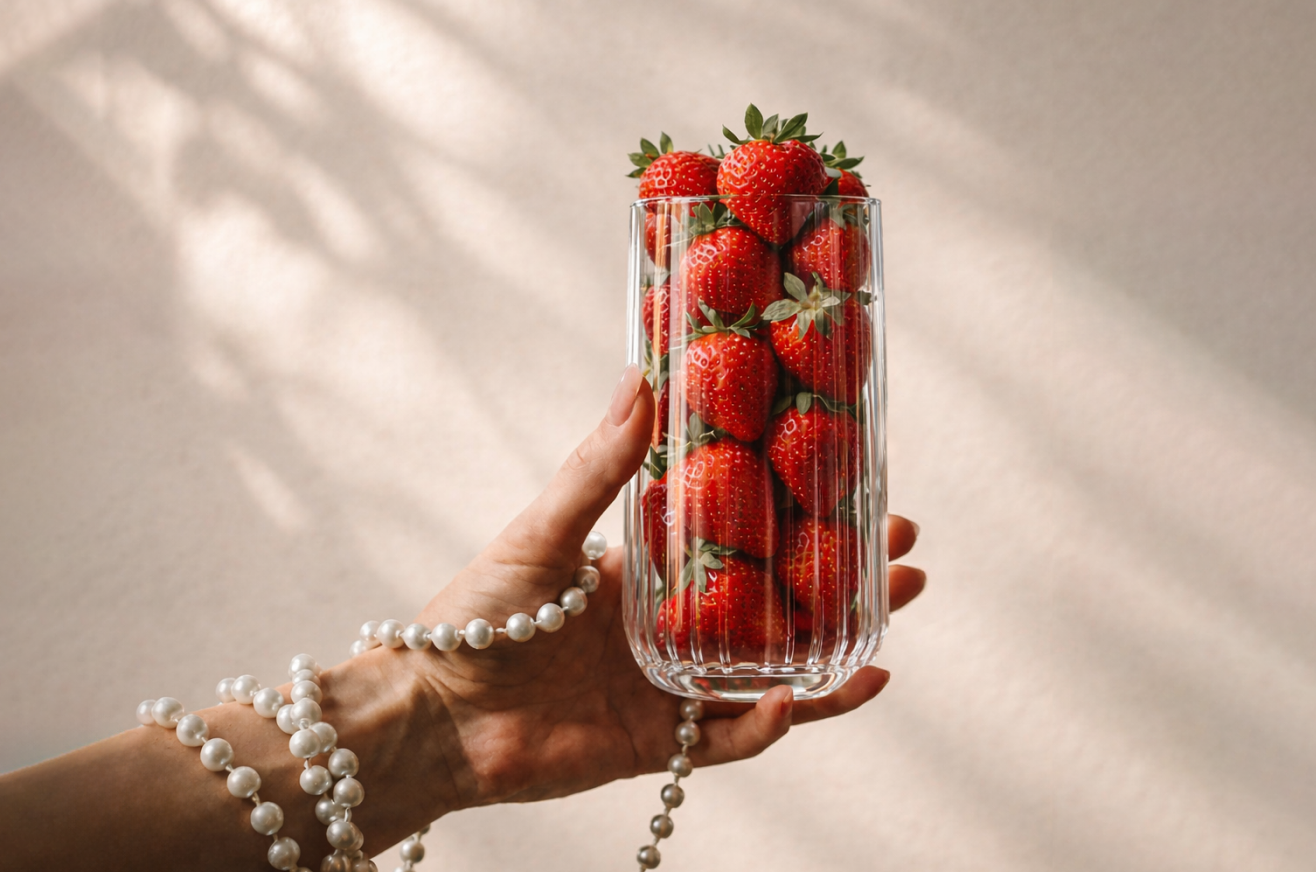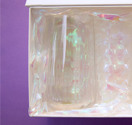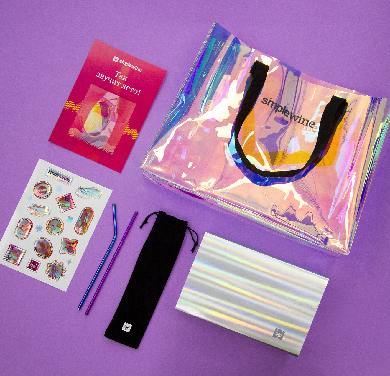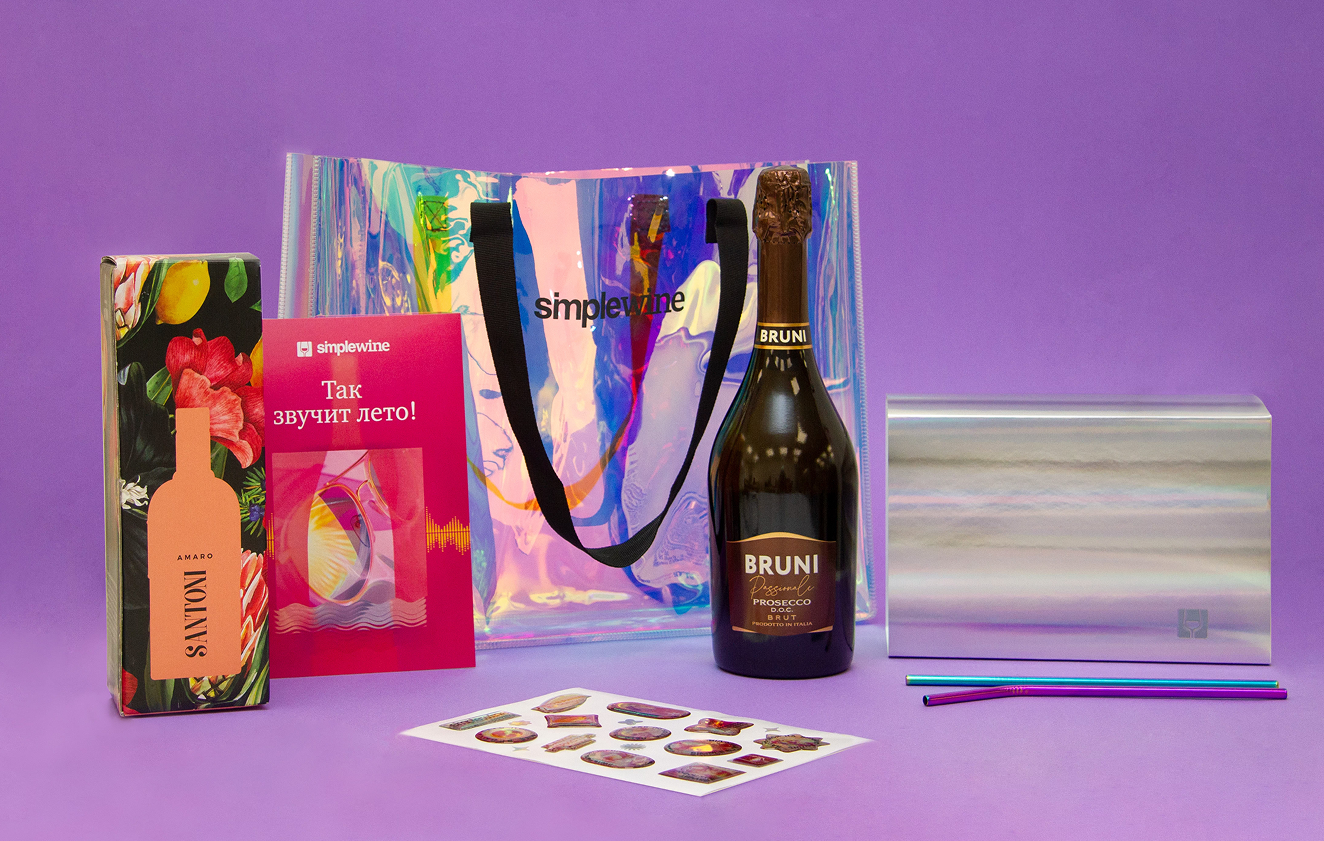 В состав набора вошли игристое вино, вместительная сумка-шоппер с перламутрово-металлическим напылением, фирменные аксессуары и печатные материалы. Переливающиеся поверхности напоминают о моментах, когда счастье переливается через край бокала!