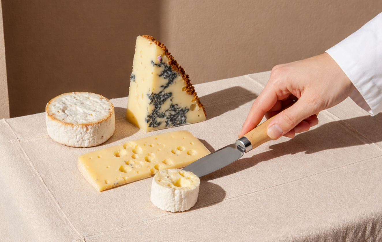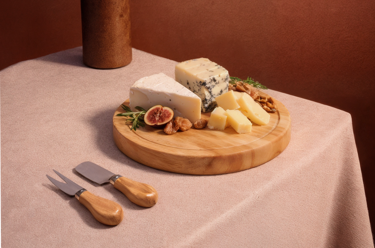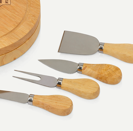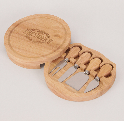 В состав набора вошли аксессуары для сервировки закусок: деревянный поднос, вилка для сыров и нож-лопатка для подачи сыров — размещенные в индивидуальной компактной упаковке. Логотип компании нанесён методом гравировки, что обеспечивает долговечность даже при самом регулярном использовании.
