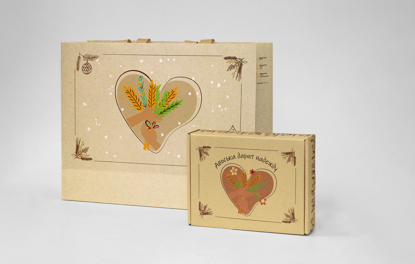 В рамках социального проекта был разработан и реализован подарочный набор, в основе которого лежит идея о необходимости помогать друг другу, делясь теплом и поддержкой. Натуральные цвета и материалы призваны обрамить сделанную вручную ‘авоську надежды’.