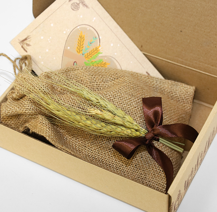 Упаковкой в виде коробки из мягкого и тактильно приятного крафт-картона, на которую нанесена авторская иллюстрация. Внутри находится авоська, подарочная открытка и дополнительные символические элементы, которые выполняют задачу тонкого брендирования.